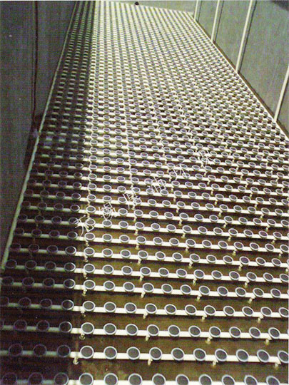 3. 由于膜片式微孔曝氣器可滿布在曝氣池底部,在池中溶解氧均勻,可適用于各種池型和深度,也可以對(duì)原有曝氣池進(jìn)行改造,使其提高效果。