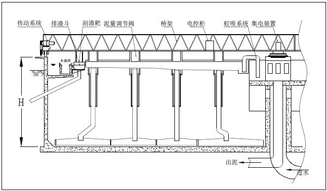4、該設(shè)備運(yùn)行平穩(wěn),吸泥、刮浮渣能同時(shí)進(jìn)行,能耗省。